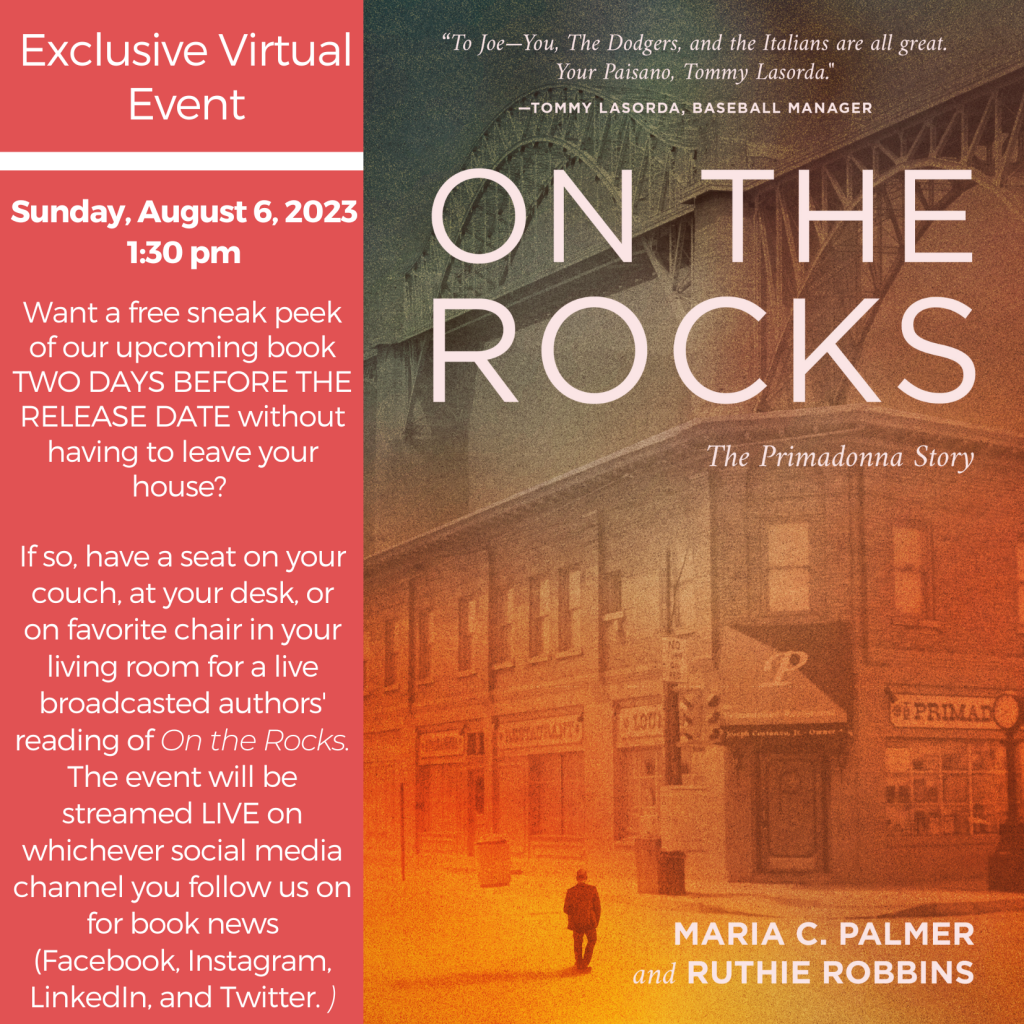 VERY EXCLUSIVE EVENT FOR THE FIRST 50 PEOPLE ONLY!!! On Wednesday, August 9th from 7-9 pm at the Little Green Bookstore in Zelienople, PA will host a private event, which will include a hardcover book, a panel conversation with Ruthie, Maria, and Joe led by Fiore and Michelle Moletz, Owners of the Award-Winning Della Terra Restaurant, book signings, photos, meet and greets, and an extra special surprise treat courtesy of bookstore owner Chris Border. This will be an incredibly intimate personalized event that you don’t want to miss. You can call the store at (724) 473-4599 to reserve your spot.